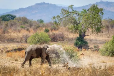 The Ruaha-Katavi landscape is a vital conservation area in eastern Africa. It spans approximately 113,934 km2 and boasts high levels of ecological intactness. Over 84% of the landscape is protected, including 3 national parks, 10 game reserves, and various other areas managed by communities and districts. Two wildlife corridors connect the eastern and western protected areas, maintaining the overall integrity of the landscape. This area is home to significant wildlife populations, such as over 600 bird species, the largest remaining elephant population in East Africa (around 19,883 +/- 2,198 in 2021), approximately 15% of Africa's remaining lions, and one of the last three meta-populations of African wild dogs with over 500 adults. These natural resources are crucial not only for Tanzania's tourism circuit but also for the livelihoods of millions of Tanzanians. They provide essential ecosystem services, contribute to crop pollination services, and help mitigate climate change.